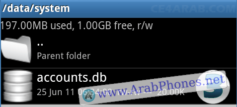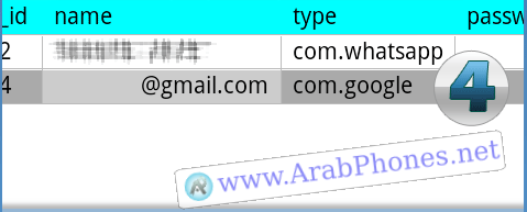 ثم ملف accounts.db بتطبيق SQLite Editor