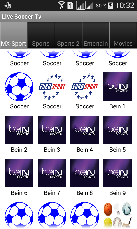 live soccer tv هو تطبيق لمشاهدة العديد من القنوات، نجد منها ما يخص المسلسلات و الأفلام و الرياضية بالأساس، هذه الأخيرة توفر لك مشاهدة جميع الرياضات بما فيها كرة القدم، و ما يهمنا نحن طبعا قنوات البين سبورت Bein Sport، المتوفرة بالعربية من 1 إلى 9 ، كذلك الفرنسية من 1 إلى 3.