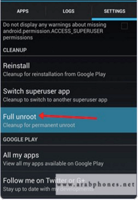 3- الان اضغط على الخيار Ful Unroot