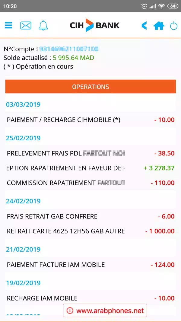 يمكنك من تطبيق CIH BANK تعبئة الجوال الخاص بك سواك كان ضمن شبكة اتصالات المغرب، انوي او اورونج، اضافة الى انه يمكنك تحديد نوع التعبئة بين انترنت، مكالمات، رسائل.. وتفعيل العروض.