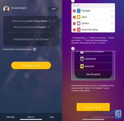 حتى تقوم بعمل بث مباشر على Nimo TV على iPhone أو Android، قم باتباع الشرح التالي: