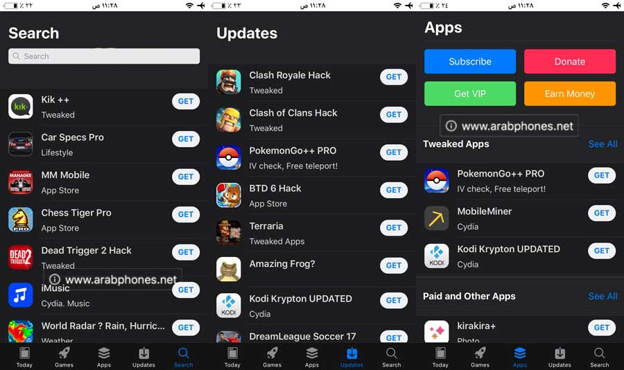 - يتوفر على العديد من تطبيقات البلس والالعاب المهكرة مجانا يمكن تثبيتها بضغطة زر.